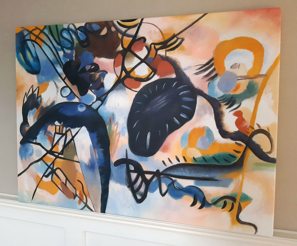 Obraz olejny pt."Czarny punkt" namalowany ręcznie na podstawie dzieła Wassily Kandinskyego.