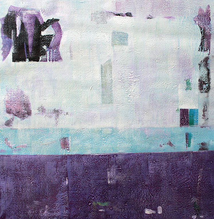 Obrazu tego nie da się opisać w sposób tradycyjny i jednoznaczny. Trudno też określić, co tak naprawdę w nim się zawiera, a co jedynie nam się wydaje... Co jednak mu trzeba przyznać- wygląda naprawdę dość intrygująco. Podzielony jest na trzy części- każda z nich charakteryzuje się innym odcieniem i natężeniem fioletu. Patrząc w pierwszej chwili pomyślałam, że każda kolejna część symbolizuje inny żywioł. Najciemniejsza część to Ziemia, najjaśniejsza natomiast- Powietrze. Nasunęła mi się taka myśl, ponieważ większość obrazów posiada taką właśnie konstrukcję. Pomiędzy tymi dwoma żywiołami znajduje się oczywiście Woda. Pas, który w moim odczuciu symbolizuje Wodę, ma nawet lekko niebieskawy odcień- stąd więc zapewne wzięło się to skojarzenie.