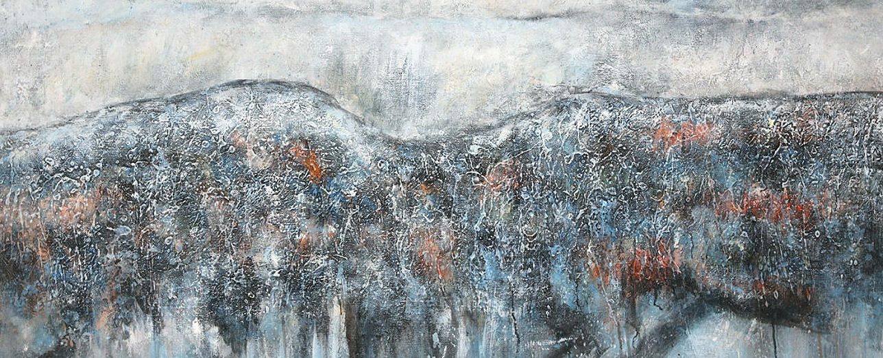 Nowoczesna abstrakcja namalowana ręcznie farbami olejnymi na płótnie.