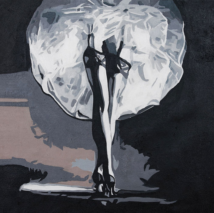 Obraz olejny w stylu Pop art, o wymiarach 55 x 55 cm.