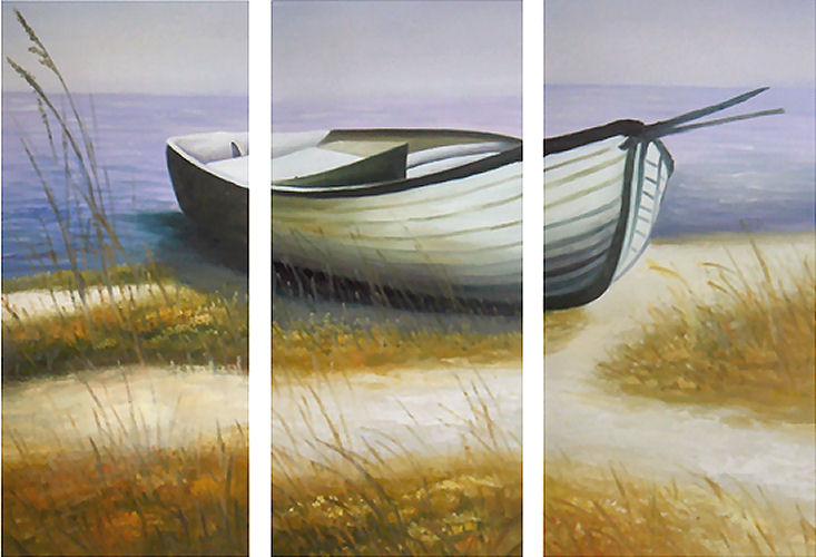 Obraz składający się z trzech oddzielnych płócien (tryptyk), malowany ręcznie farbami olejnymi.