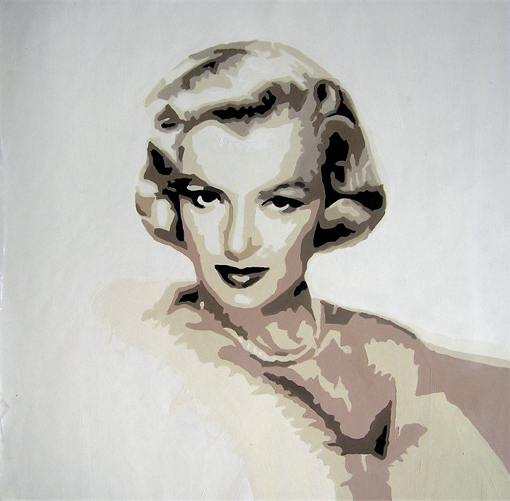Namalowany ręcznie farbami olejnymi na płótnie. Na obrazie przedstawiony jest wizerunek Marilyn Monroe.