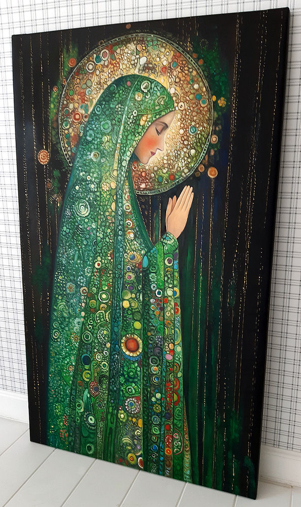 Grubość obrazu: 2 cm. Boki zamalowane w kolorystyce obrazu, dzięki czemu nadaje on się do powieszenia na ścianę bez konieczności oprawy go w ramę.