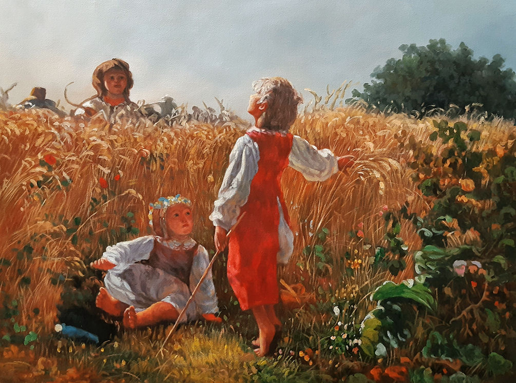 Obraz olejny namalowany ręcznie na podstawie dzieła Józefa Chełmońskiego pod tytułem "Matula są!".
