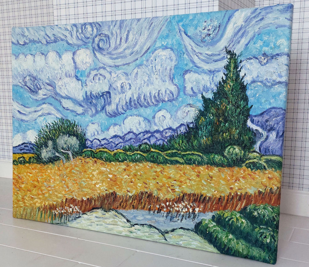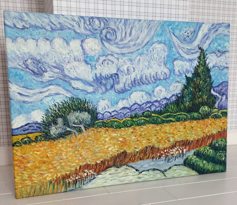 Obraz olejny pt. "Pole pszenicy" namalowany ręcznie na podstawie dzieła Vincenta van Gogha.