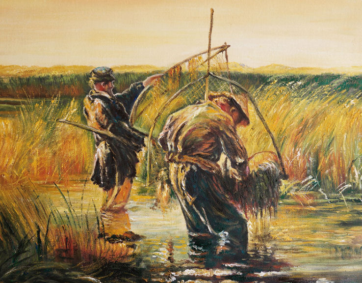 Obraz będący ręcznie namalowaną kopią dzieła pt. "Połów raków" autorstwa Leona Wyczółkowskiego.