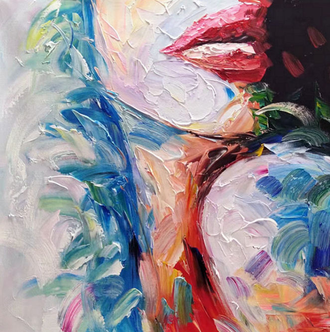 Nowoczesna abstrakcja namalowana ręcznie farbami olejnymi na płótnie.