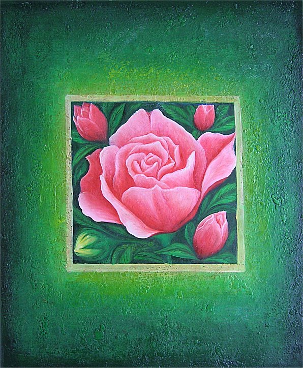 Płótno jest naciagnięte na sosnową blejtramę i posiada zamalowane boki w kolorystyce całości. Dzięki czemu nadaje sie do powieszenia na ścianę bez konieczności oprawiania w ramę.