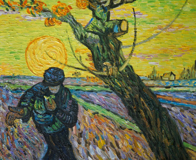 Obraz będący ręcznie namalowaną kopią dzieła Vincenta van Gogha pt. "Siewca".