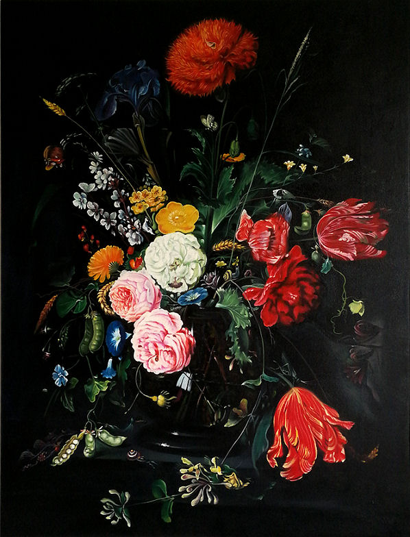 Obraz olejny pt. "Wazon z kwiatami" namalowany na podstawie dzieła artysty Jan Davidsz. de Heem.