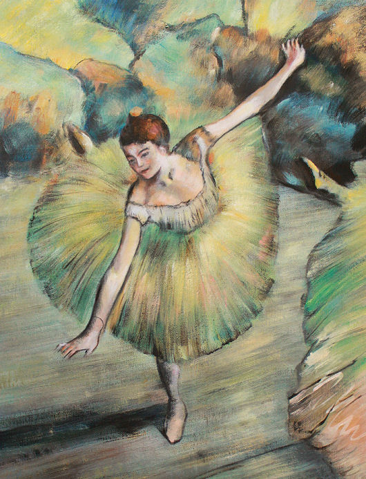 Ręcznie namalowany obraz wzorowany na dziele Edgara Degasa pt. "Wirująca tancerka".